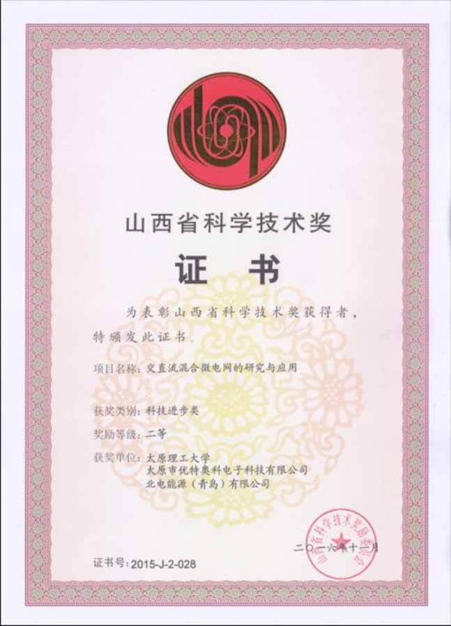 我公司與太原理工大學(xué)建立了長期的產(chǎn)學(xué)研合作機制,合作完成了國家國際科技合作項目“含分布式電源的微電網(wǎng)運行與優(yōu)化控制的合作研究”,其成果“交直流混合微電網(wǎng)的研究與應(yīng)用”經(jīng)山西省科技廳組織鑒定,專家意見為具有國際先進技術(shù)水平。并獲得了2015年度山西省科技進步二等獎。