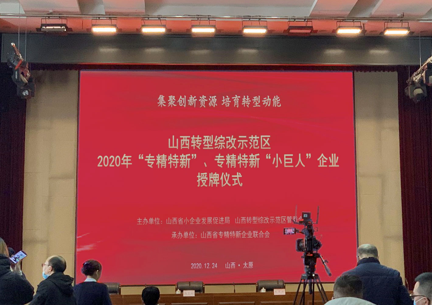 2020年10月,山西省小企業(yè)發(fā)展促進局認定我公司為山西省專精特新中小企業(yè)。2020年12月24日山西省小企業(yè)發(fā)展促進局和山西轉(zhuǎn)型綜改示范區(qū)管委會對81戶專精特新企業(yè)進行了集中授牌。