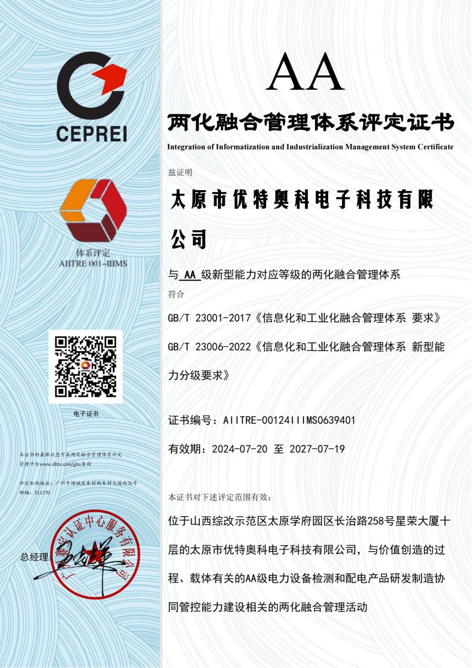 近日,我公司正式獲得兩化融合管理體系A(chǔ)A級評定證書,標(biāo)志著在信息化與工業(yè)化融合方面取得顯著進展。此次評定嚴(yán)格按照國家標(biāo)準(zhǔn),歷經(jīng)多個環(huán)節(jié),最終順利達標(biāo)。